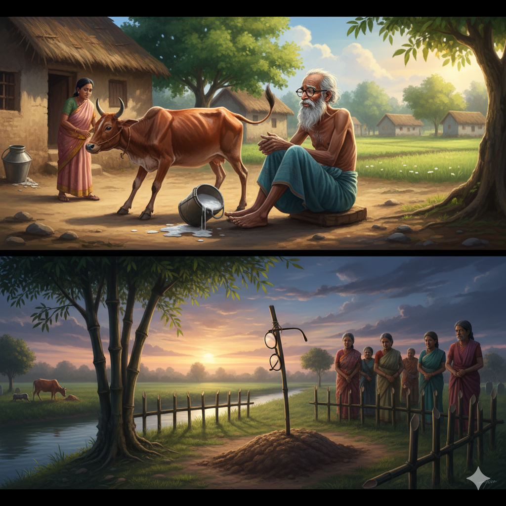 কাঁচা দুধের একটা মিষ্টি ঘ্রাণ ছড়িয়ে পড়ল সকালের বাতাসে। কাঁচা মাটির উঠোনের বেশ খানিকটা জায়গা জুড়ে গড়ায়ে পড়েছে সদ্য দহনকৃত এক মালসা কাঁচা দুধ। দুধের মাছিরা এখনো খবর পায়নি। কিন্তু দুধের মিষ্টি গন্ধের সাথে কানে ভেসে এলো কিছু তেতো কথার সুর। গ্রাম্য ভাষার সরল উচ্চারণে শোনা গেল- “তোর গায় বল নেই তো বাছুর ধরতি যাস কেন্,